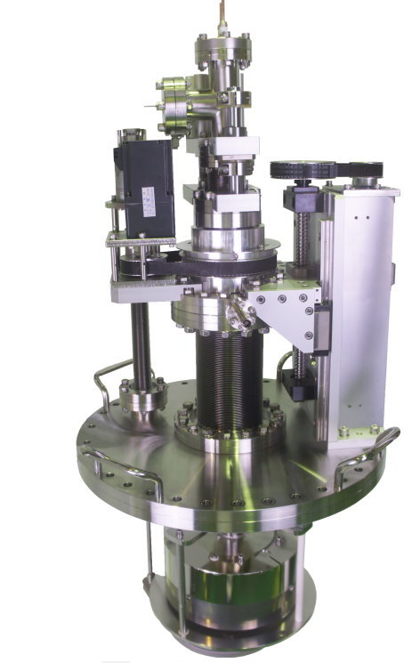 針對超高真空和高溫加熱設計的基板旋轉鍍膜機構,使用陶瓷培林旋轉,並在內部做水冷,來保護機構以確保長時間運轉的穩定。